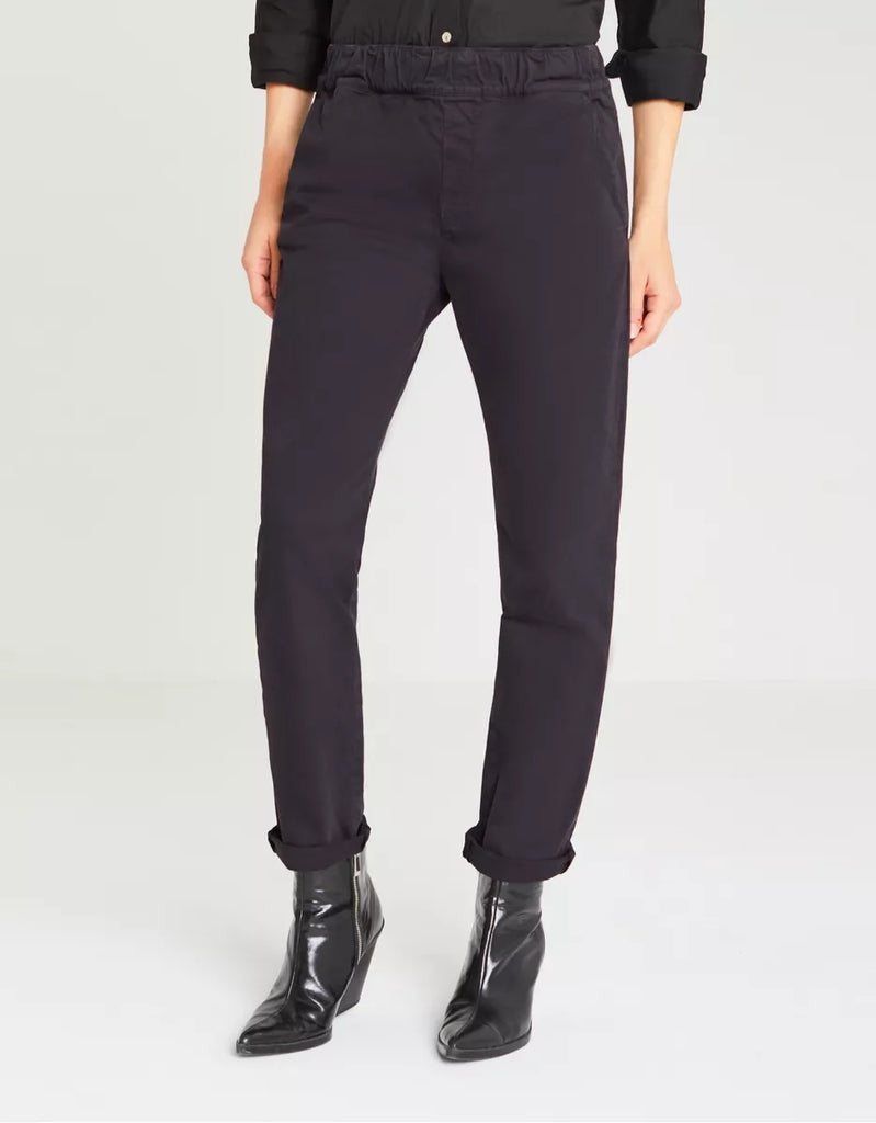 Please welcome Suzie into your wardrobe! The modern, sporty, comfortable, elasticated waist version of the chino. They have rolled cuffs, front pockets and just enough stretch to make these your go-to trousers. Slightly dressier than jeans but casual enough for everyday you will be able to dress these staples up or down with a goreous cashmere jumper or a classic shirt or blouse. Why not get a pair in each colourway? What is not to like!!