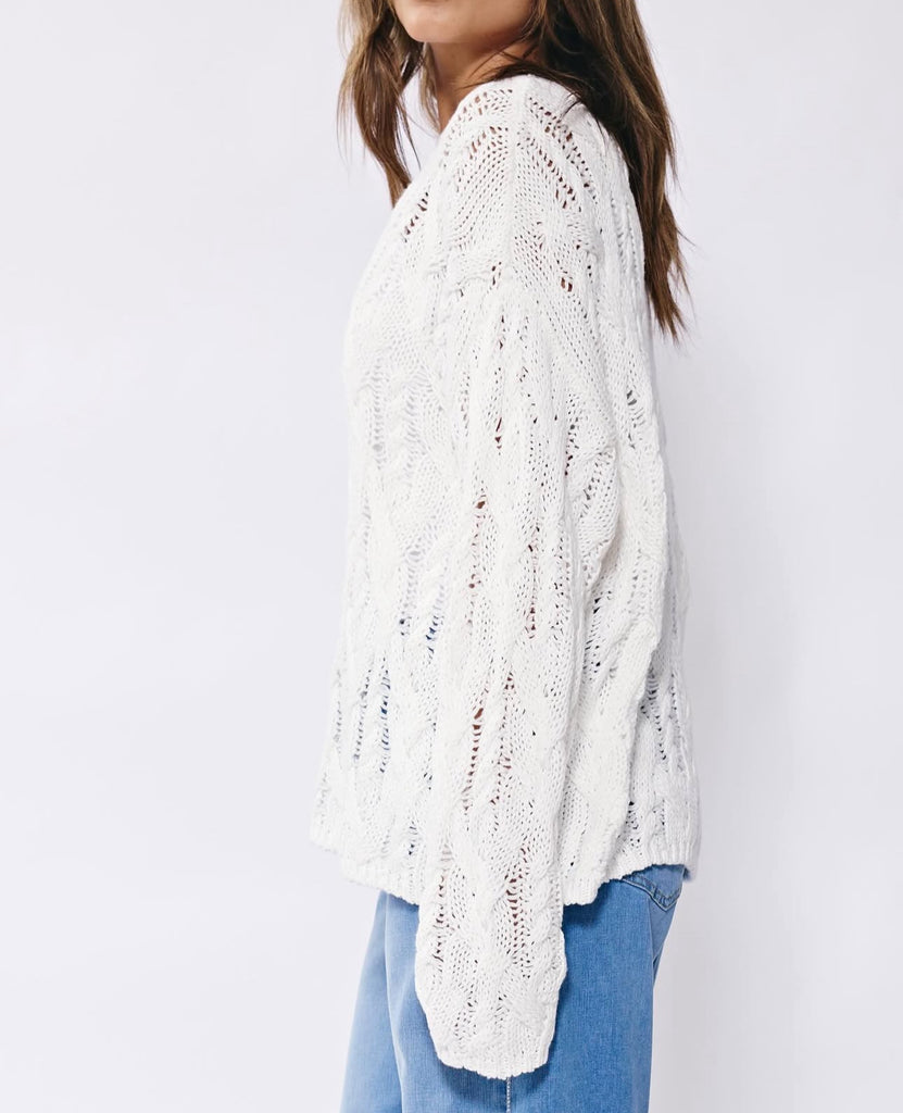Chunky white jumper of dreams! This gorgeous 100% cotton jumper is crafted from the softest cotton in a nice chilled loose knit and is just the thing with your favourite denim. Sumptuously comfy - you'll never want to take it off!