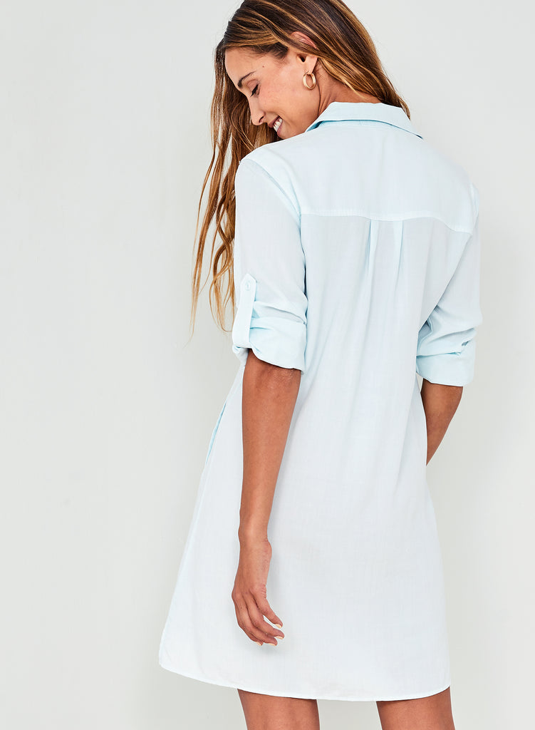 Get ready for compliments! This fun and flirty long sleeved a-line shirt dress from Bella Dahl is crafted from their signature super soft fabric and features a hi low hem and a v-neck front. So comfy you'll want to live in it when the weather heats up. Pair with your D.A.T.E. trainers for an easy day look.
