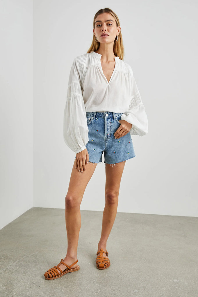 Marli is an incredibly easy to wear top from Rails. Crafted from Rails signature super soft fabric and featuring a flattering v neck, pleat detailing at the collar, chest and arm and elasticated wrists this looks perfect paired with your favourite denim or shorts for a laid back easy look.