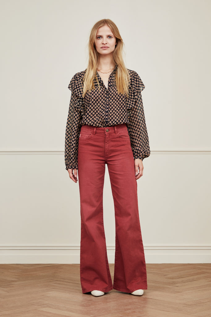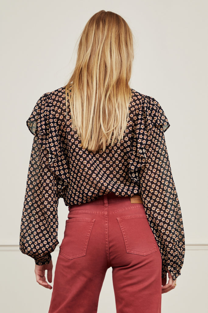 Fabulously feminine blouse from Fabienne Chapot. Crafted from super soft and lightweight viscose georgette this is a perfect transitional piece. With a flattering long sleeve, dainty ruffle detail and a button up front this will look perfect paired with your favourite denim.