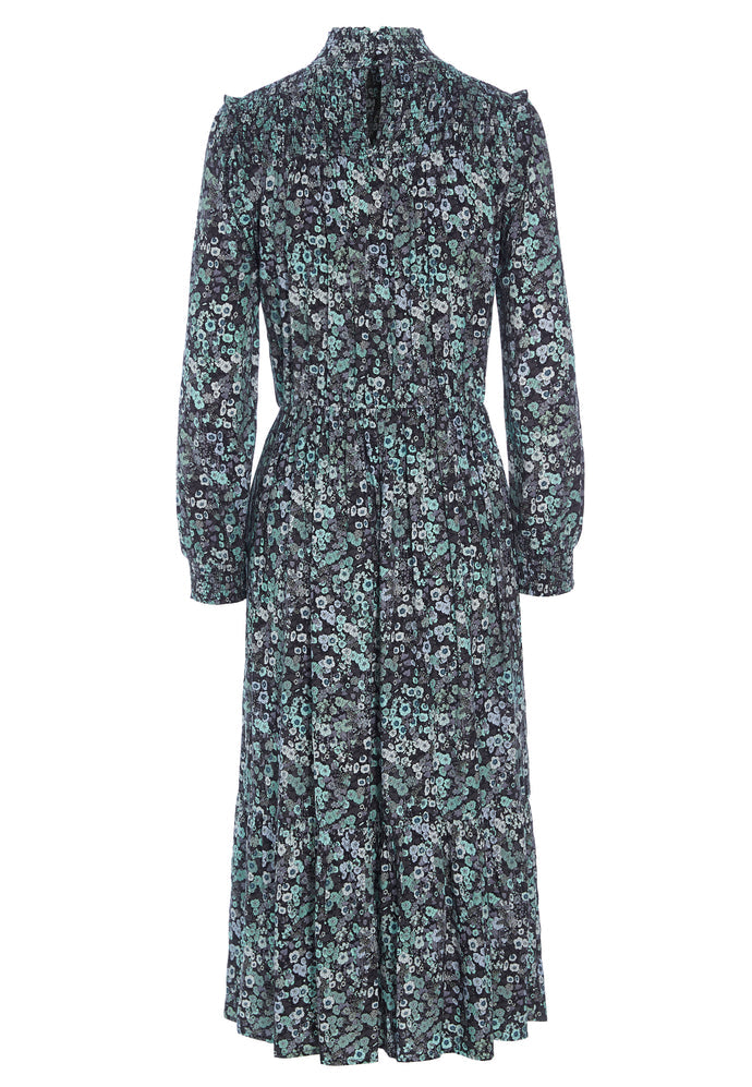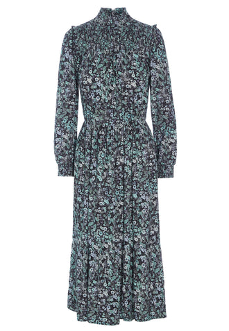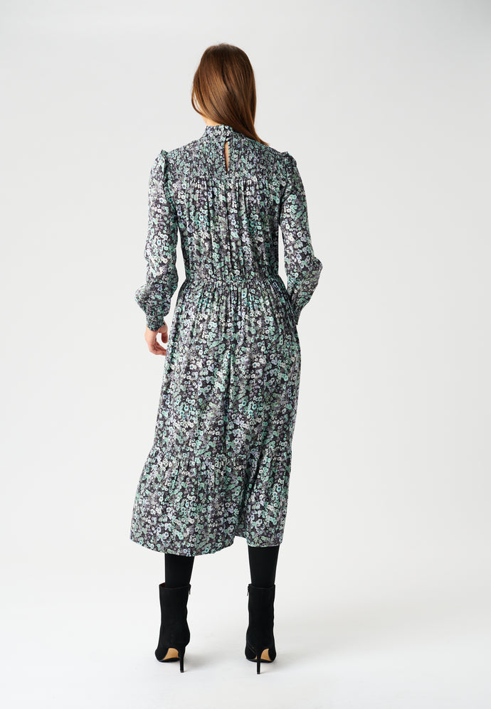 The Kristen Midi Dress is feminine and discretely flirty!  Crafted from super soft stretch viscose crepe and featuring smocking details at the cuffs and collar, ruffles at the shoulder and a slight gathering at the waist this is a shape that will flatter most.  In a pretty floral print this looks fab paired with your favourite boots and a leather jacket.