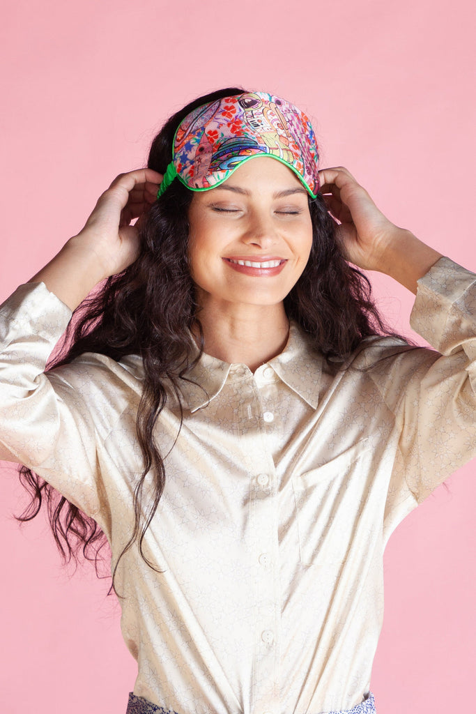 The super comfy padded blackout silk sleep mask from Jessica Russell Flint is crafted from the softest silk and will help guarantee a good night's sleep. Shown here in the pretty Solar Myth print these make a super gift for a friend or a treat for yourself!