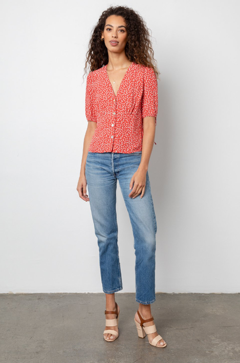 The perfect effortless option for everyday wear. Amelia from Rails is feminine and flattering with an empire waist, v neck, button down front and a pretty self tie detail at the sleeve. Perfect with your favourite denim.