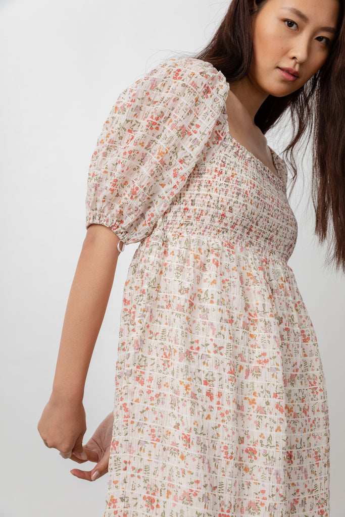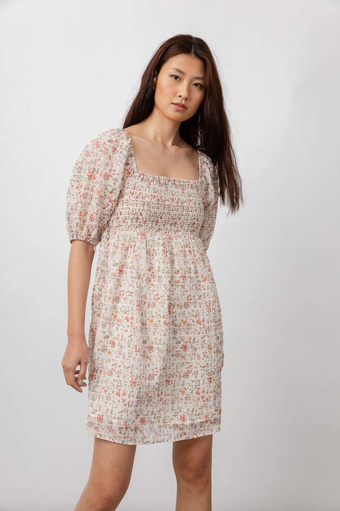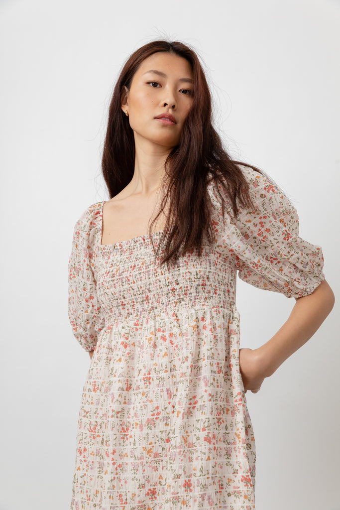 Super feminine and lightweight seersucker mini dress featuring short puff sleeves, a smocked bodice, an elasticated square neckline and elastic at the elbow cuff. Effortlessly flattering this is a perfect throw on and go shape from our favourite California lifestyle brand Rails.