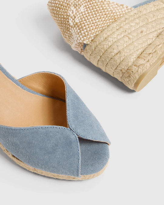 The Bianca Espadrilles from Castaner are incredibly versatile. Made in a pale blue cotton canvas, they are the perfect addition to your summer wardrobe. With an ankle strap with a buckle fastening and a rounded toe - you can wear these espadrilles comfortably from day to night.