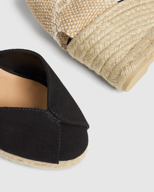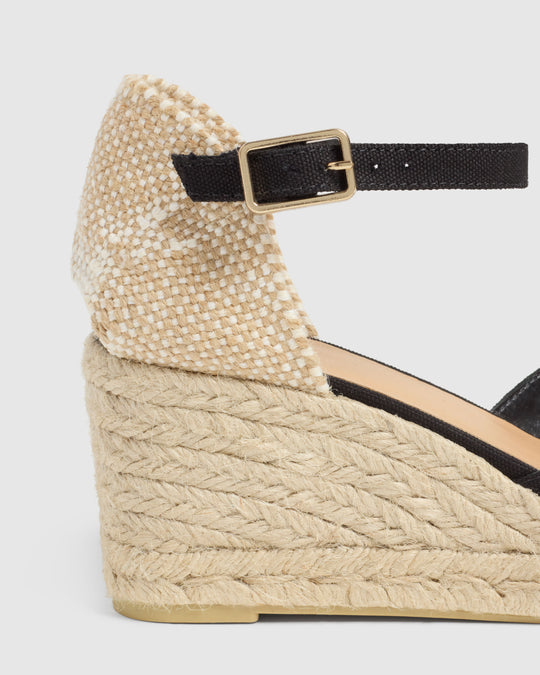 The Bianca Espadrilles from Castaner are incredibly versatile. Made in a black cotton canvas, they are the perfect addition to your summer wardrobe. With an ankle strap with a buckle fastening and a rounded toe - you can wear these espadrilles comfortably from day to night.