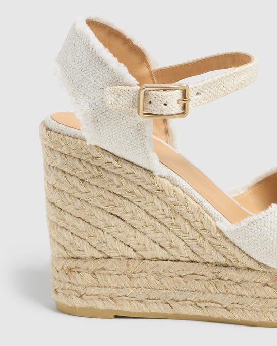 One of Castaner's signature styles, the Bromelia, is crafted from lightweight frayed metallic linen with a woven jute wedge heel and a buckle fastening. Wear these literally with everything from wide leg jeans to dresses! Get ready for compliments!