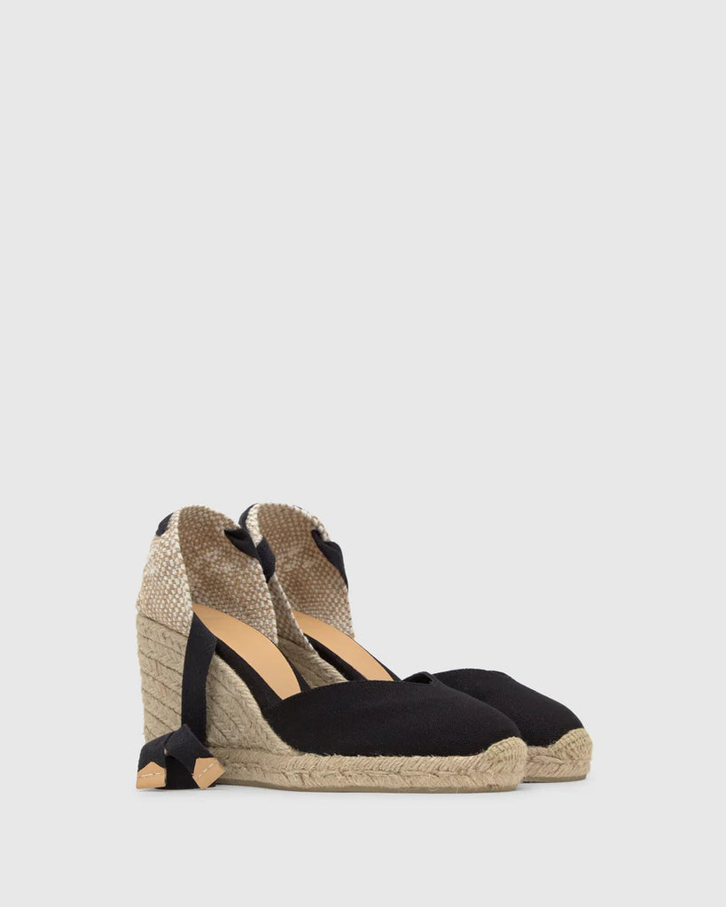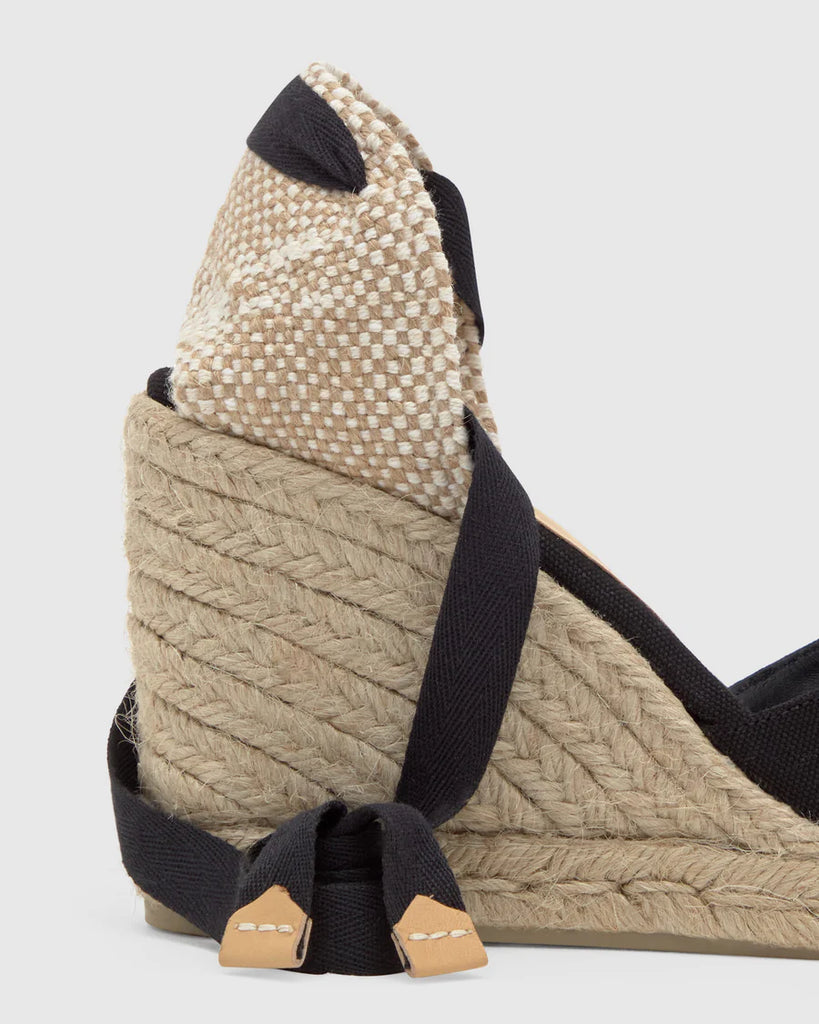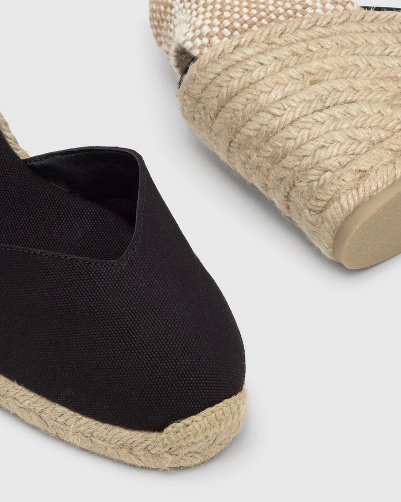 The Chiara Espadrilles from Castaner are incredibly versatile. Made in a black cotton canvas, they are the perfect addition to your summer wardrobe. With an ankle tie and a rounded toe - you can wear these espadrilles comfortably from day to night.