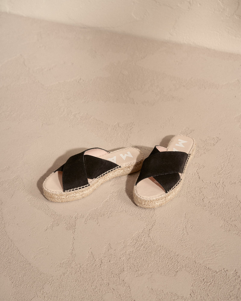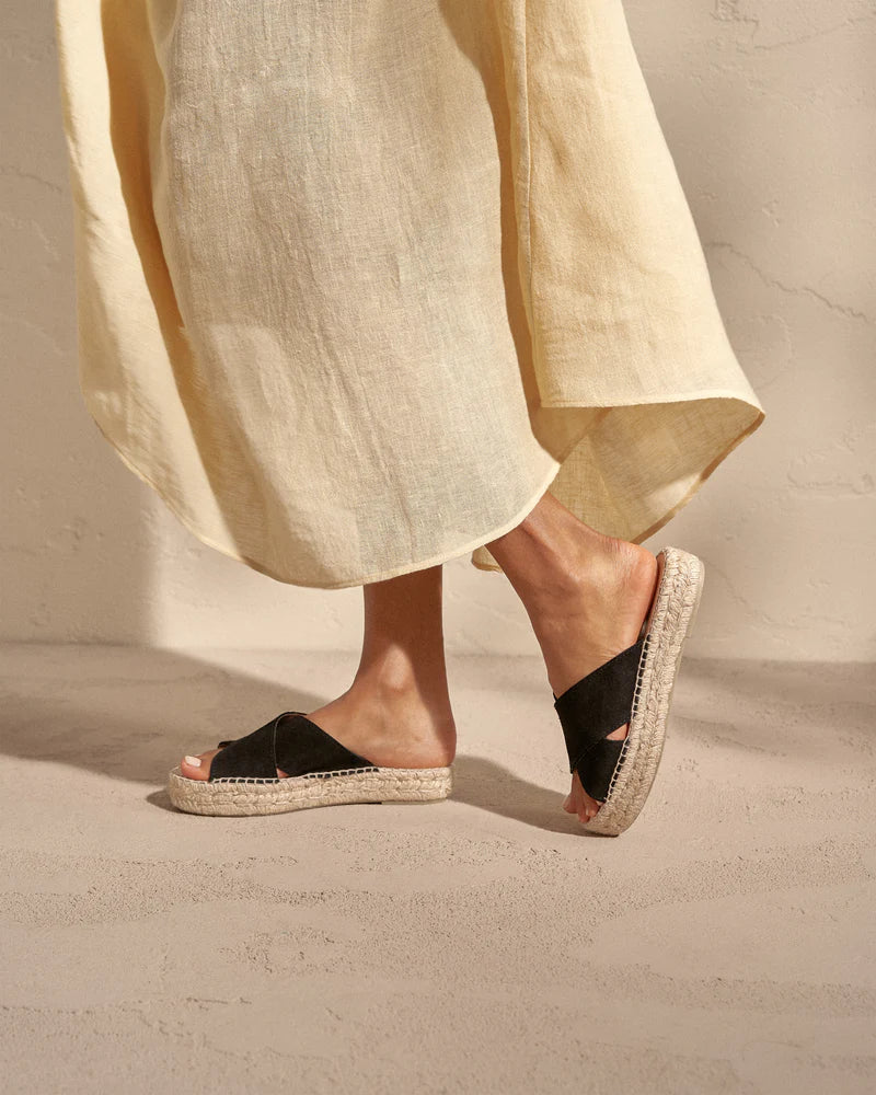 These Crossed Band Sandals from Manebi are crafted from super soft suede and natural jute. They also feature a padded double sole to provide comfort with every step. Perfect for any summer break!