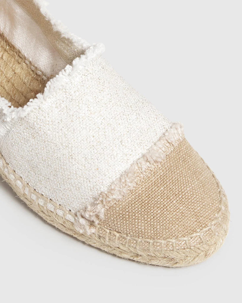 The Kampala Pumps from Castaner are made in metallic linen and are the ideal shoe for a carefree everyday look. The round toe, hand stitching and slightly frayed edge makes these pumps uniquely chic and easy to wear.
