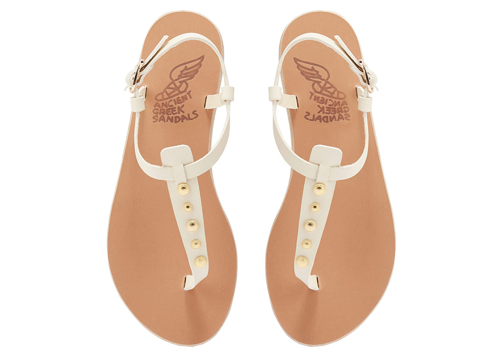 We are delighted to be be stocking Ancient Greek! These beautiful sandals are all hand made in Greece by local craftsman. Lito Bee is one of Ancient Greek's best-selling styles. Here in a super wearable off white these lovely sandals feature gold pendants along the centre strap and a buckle closure. Crafted from chemical free natural tan leather these will comfortably and quickly wear in and age beautifully. Perfect paired with your favourite Summer and Resortwear.