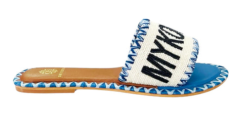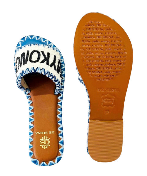 We are delighted to be stocking cool girl resort brand De Siena. These gorgeous sliders are a perfect blue colour which bring back memories of the sea in Mykonos! Handcrafted and featuring a round toe, a beaded strap and leather sole with small heel these are perfect if you are jetting away to warmer climes.