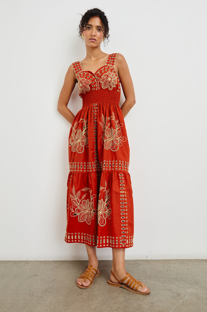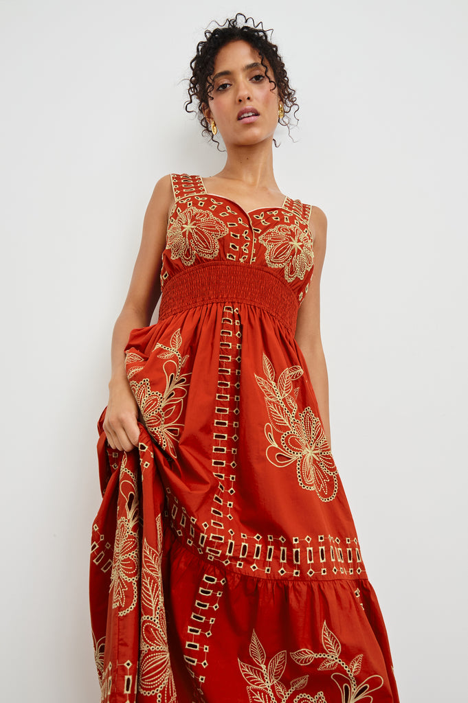Hello Fawn! This midi dress from Rails is the Wow dress you've been waiting for! Crafted from Rails signature super soft fabric Fawn features wide straps, smocking at the waist and a pretty geometrical and floral laser cut print throughout. In a gorgeous terracotta colour this is easily worn with flat sandals for a relaxed vibe but definitely could be dressed up with a heel and some big earrings!