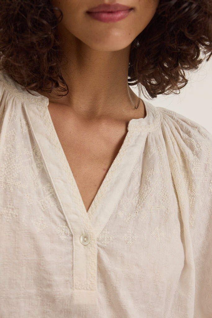 The Carina Cream Blouse from Velvet by Graham & Spencer is definitely giving serious relaxed Summer vibes. Crafted from the signature super soft fabric and featuring a flattering v neck and a relaxed shape this looks great with your favourite denim shorts.