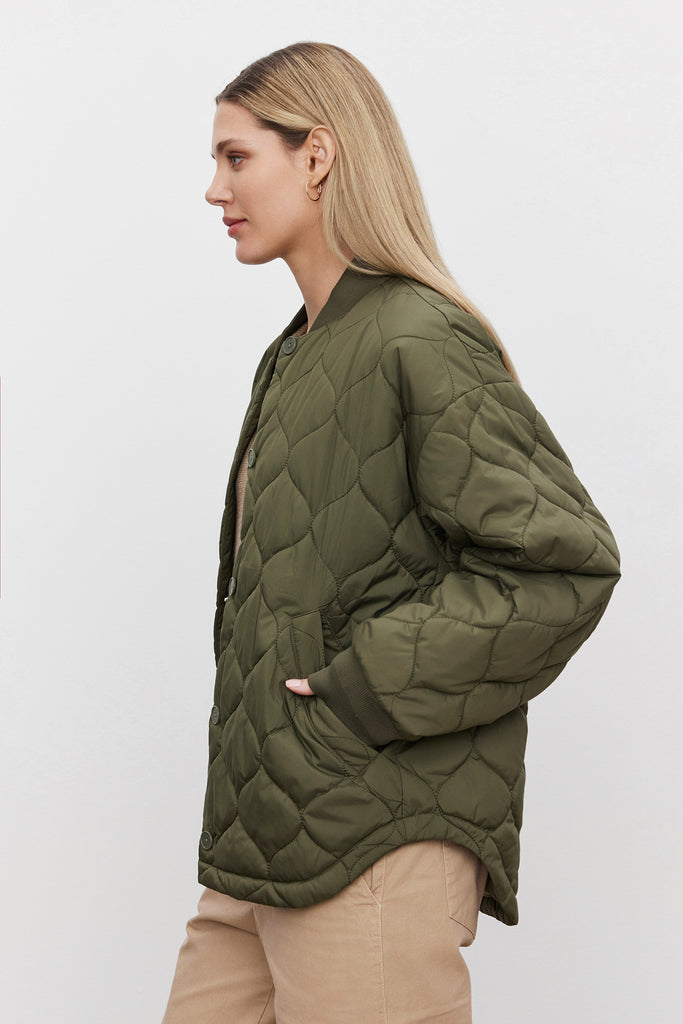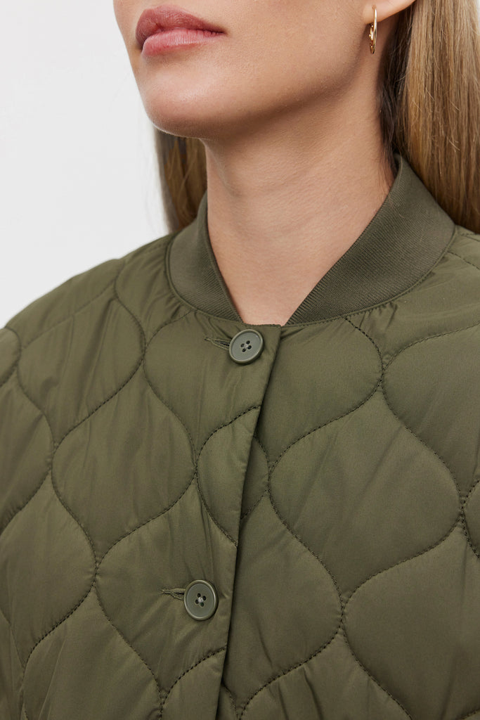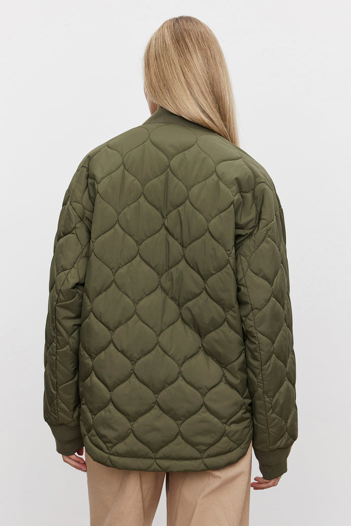 Say hello to Carrie! The perfect Fall jacket. In a great army green this quilted jacket is just the thing for when it get's a bit colder but not too cold! With a relaxed shape this is great over a jumper and paired with a straight let. One you'll reach for again and again.
