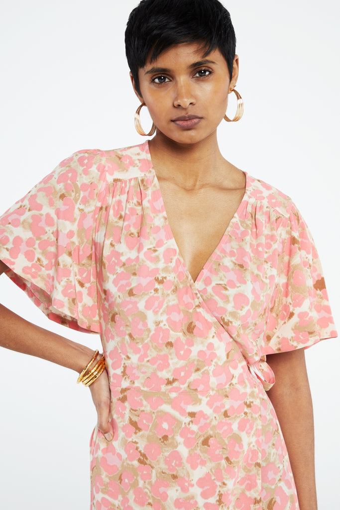 The Archana Butterfly Dress from Fabienne Chapot is an easy long flowing choice for warmer days. With short flirty flouncy sleeves, this is a wrap dress you'll throw on without a second thought. The flattering v neck and slightly shorter length at the front will make you reach for this again and again.
