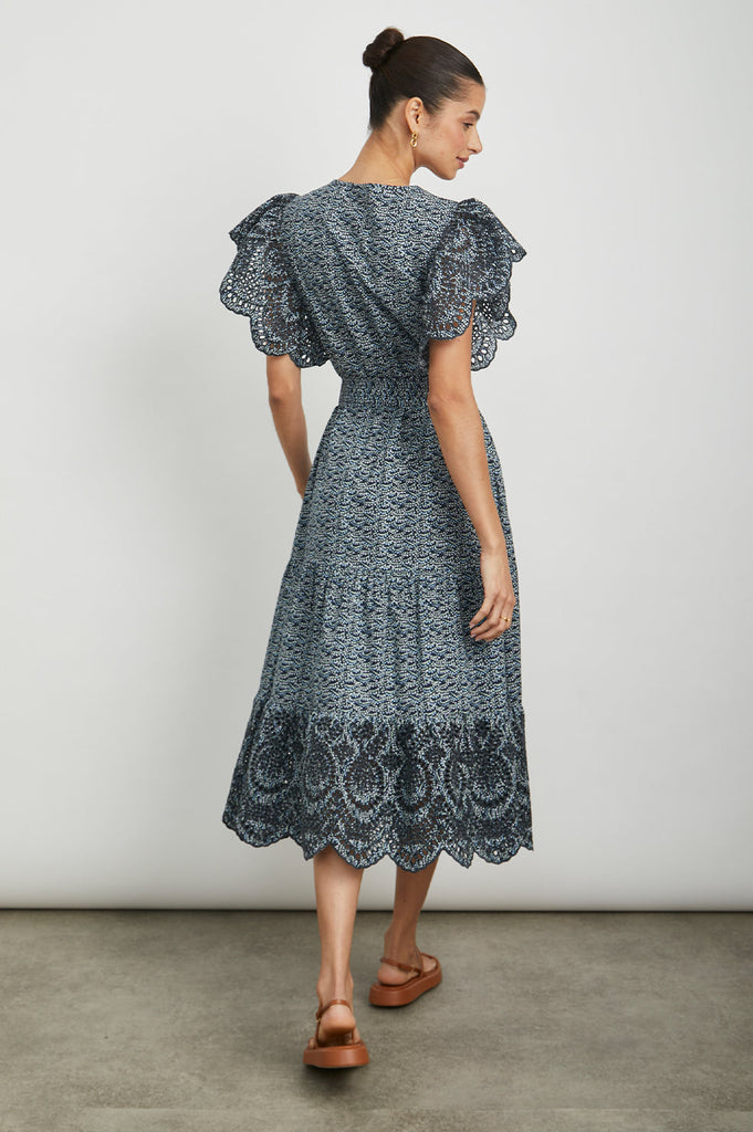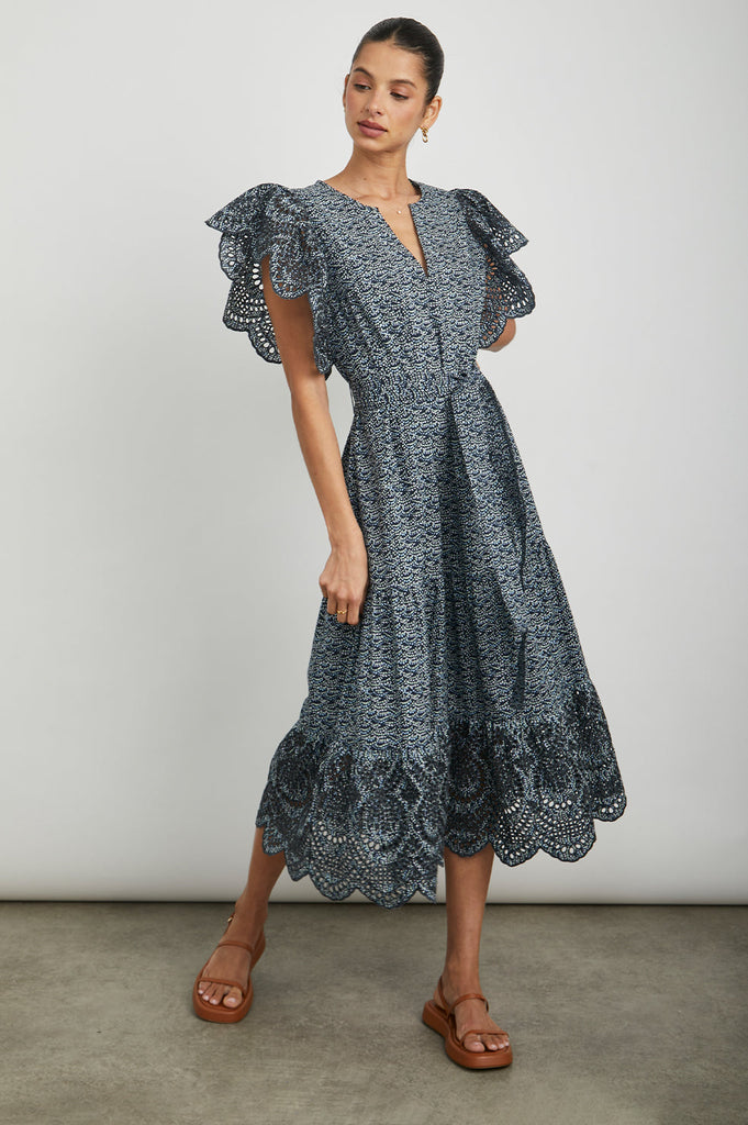 Hello Gia! This midi dress from Rails is the perfect transitional piece for the new season. Made from crisp cotton poplin, Gia features flutter sleeves, eyelet detailing throughout and a flattering tiered skirt. This is part of the rails Eco Collection so not only will you feel good about how you look, you can also feel good as you're doing your bit to help the environment!
