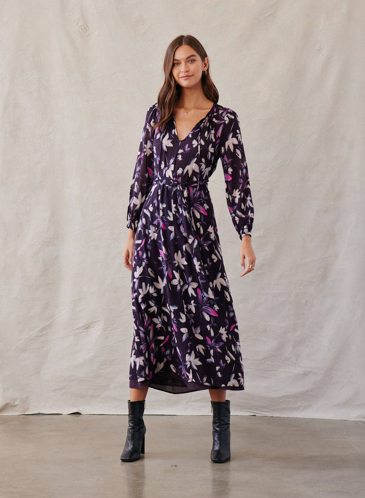This lovely floral midi dress from Bella Dahl makes for the perfect holiday dress with it's deep purple and burgundy tones. Pair it with heels for a pretty evening look or with chunky boots for a cool day vibe. The super soft fabric drapes beautifully!