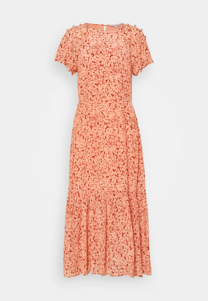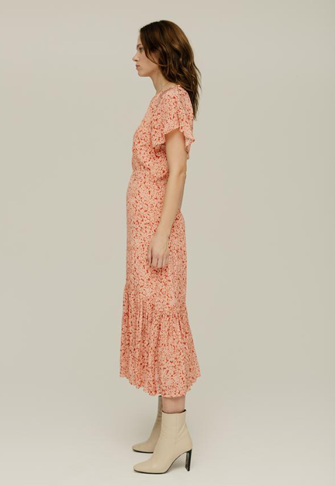 The Rae Dress is the bestselling signature shape from Lily and Lionel. Shown here in a gorgeous blush pink print and crafted from a super soft sustainable viscose crepe this is a lovely dress which moves gracefully when on the body. Featuring a subtle frill at the hem, floating sleeves with a button detail and a centre back button closure this is a flattering shape and will look equally fab with trainers or a pretty sandal.
