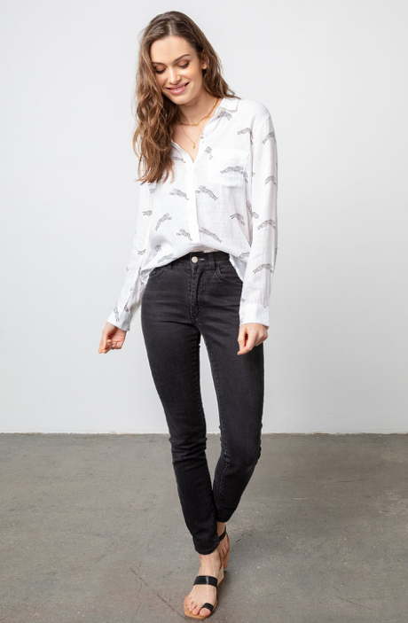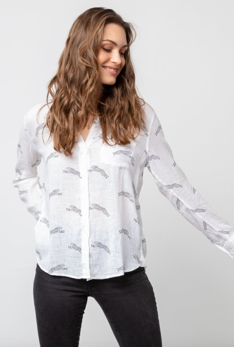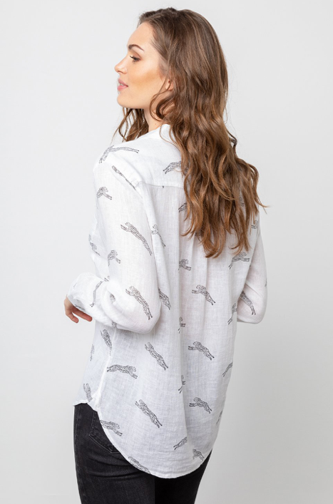 A purrr-fect shirt with a nod to the feline. With a pretty cheetah print, a longer back and a single chest pocket this linen and rayon shirt with its relaxed body shape is one that flatters just about everyone. Pair with your denim for a lazy Sunday afternoon.