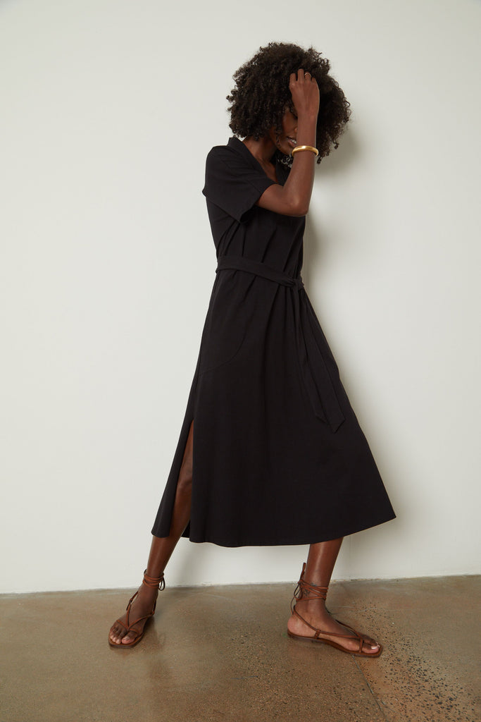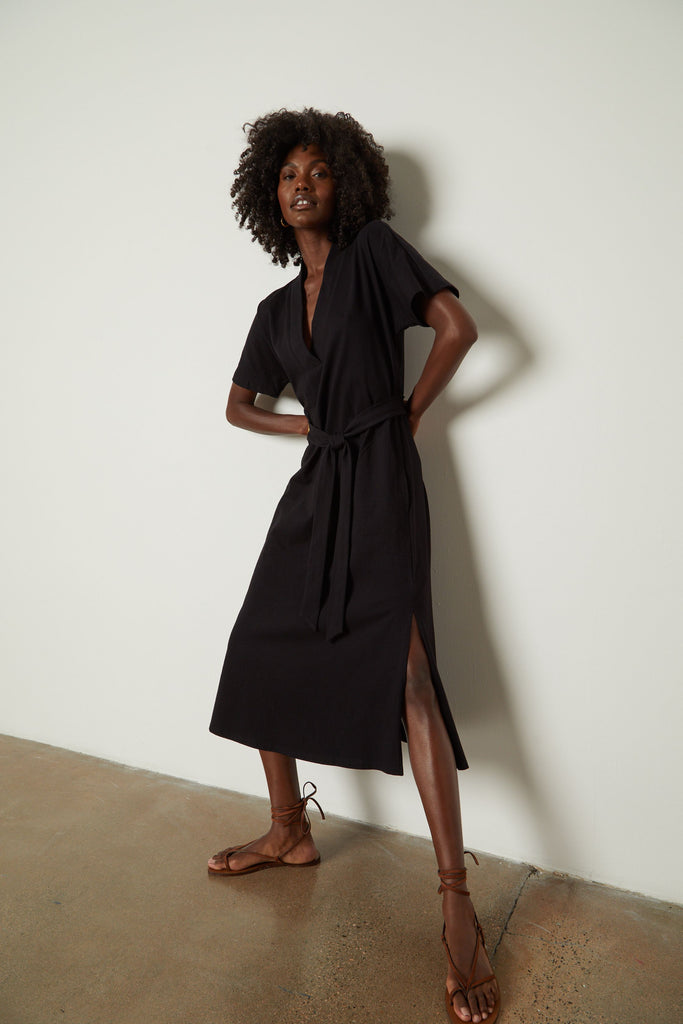 Say hello to Nora! We love a black dress and Nora ticks lots of our boxes! Cut from super soft fabric and featuring a flattering v neck, a self tie belt (though the dress looks equally great with out the belt) and falling to a midi length Nora definitely deserves a place in your wardrobe! This is one you'll reach for again and again!
