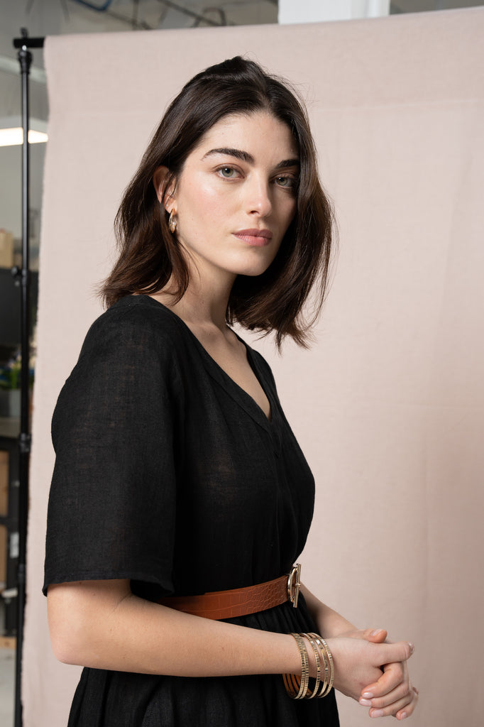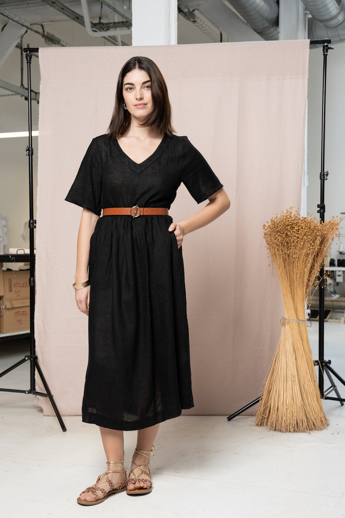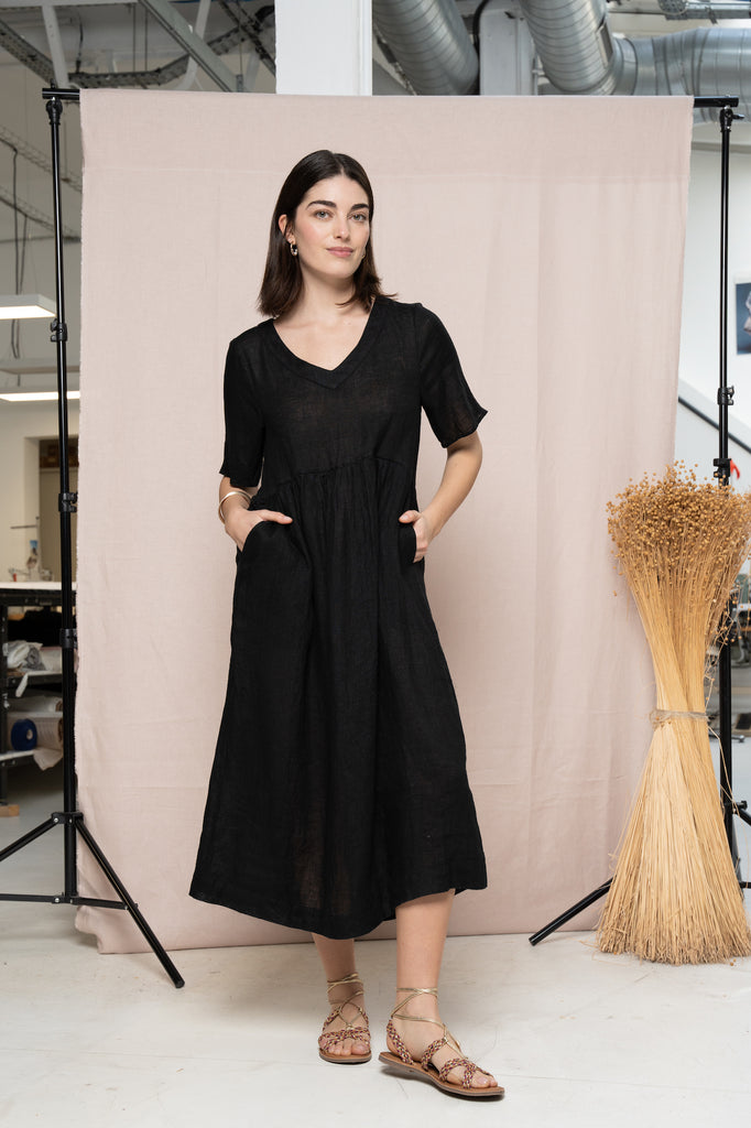 The Summer dress from Zyga is a throw on and go dress. Featuring a v-neckline, short sleeves, a slight waist detail and pockets. Wear with strappy sandals or trainers for easy but effortless summer dressing.