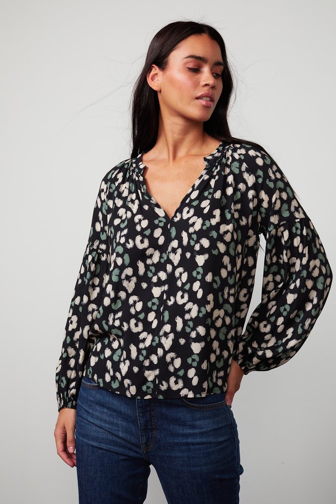 A classic relaxed shape from Velvet by Graham & Spencer this is a feel good top that is an easy to wear piece. Cinched cuffs and a relaxed volume in the sleeves makes this a flattering top paired with your favourite denim.