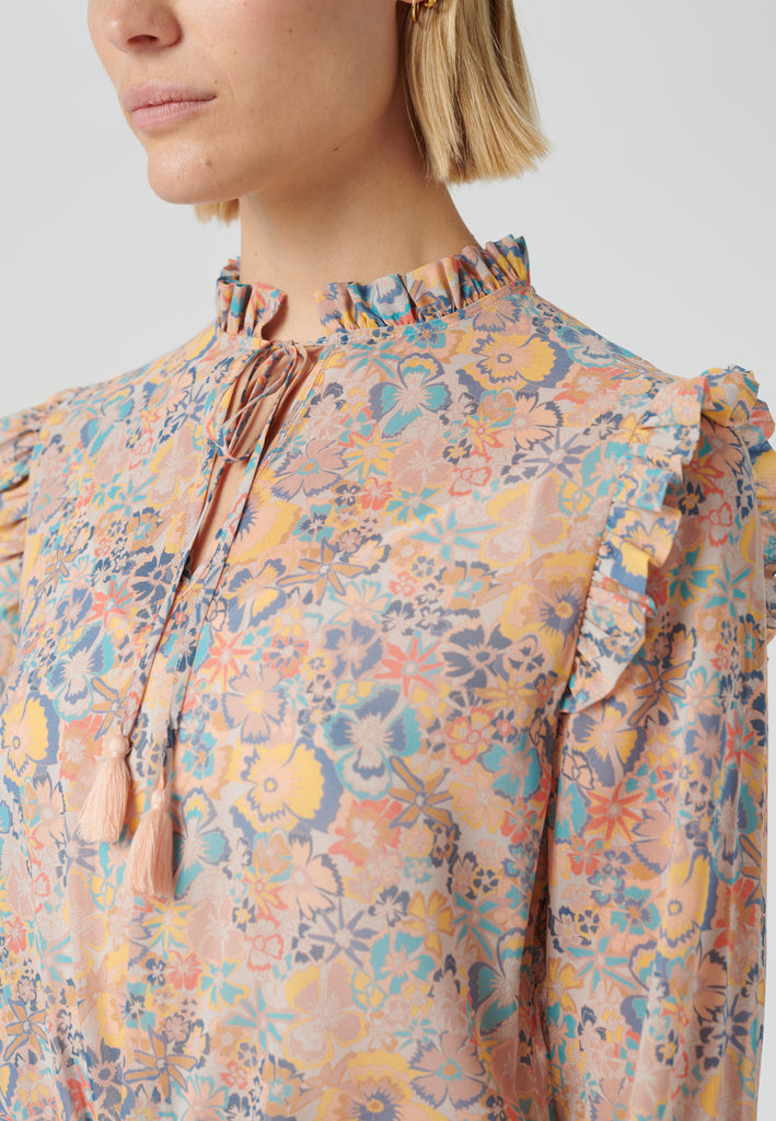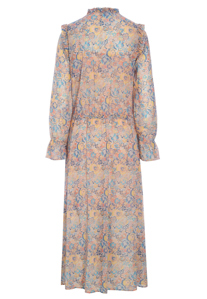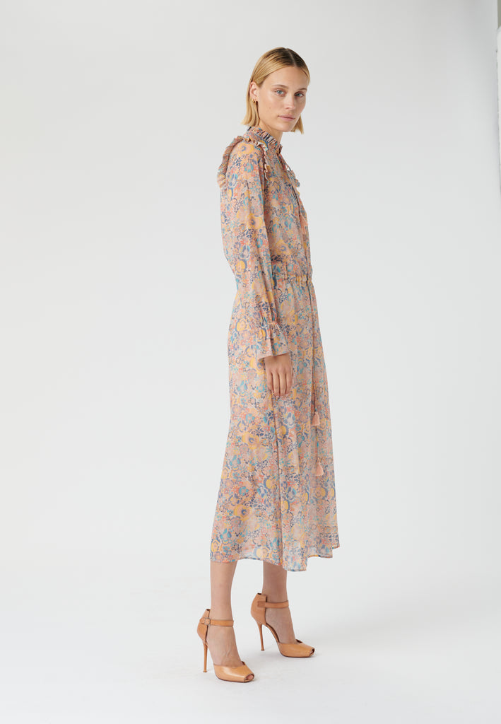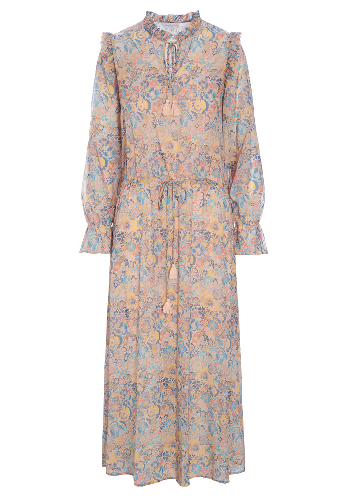 The Irina Dress from dea kudibal features small ruffles at the neck and cuffs as well as a drawstring waist that allows you subtly alter the silhouette of this beautiful silk dress. The pretty multicoloured floral print takes centre stage to make a truly stylish statement, perfect for day to night wear.